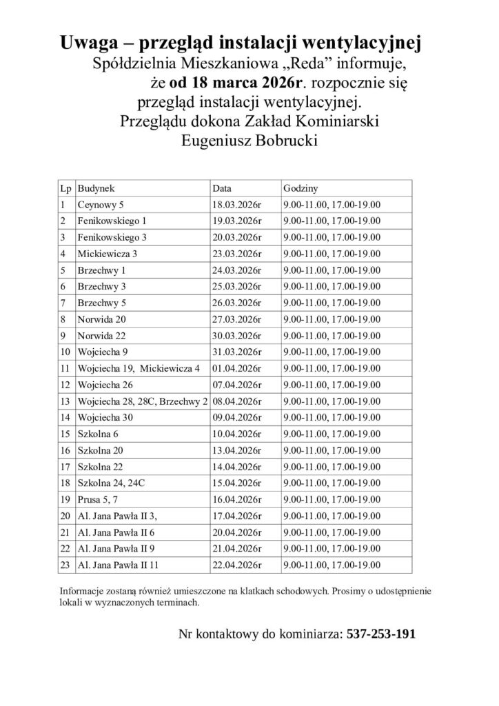 Przegląd instalacji wentylacyjnej